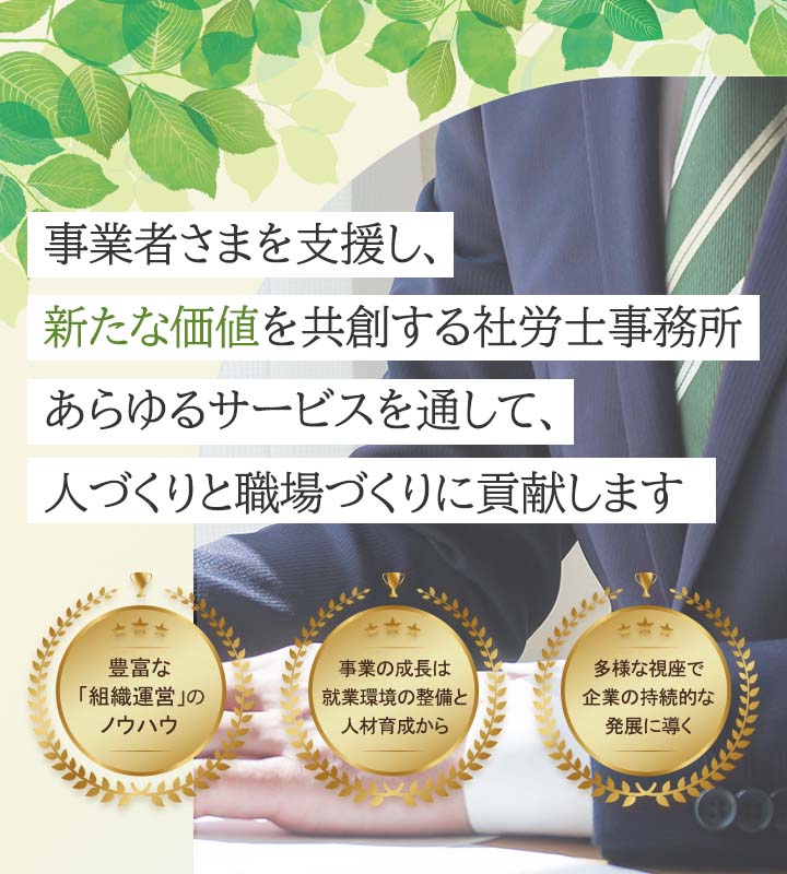 近年高まっている労務リスク対応まで、事業者さまに伴走して御社をしっかり支えます。